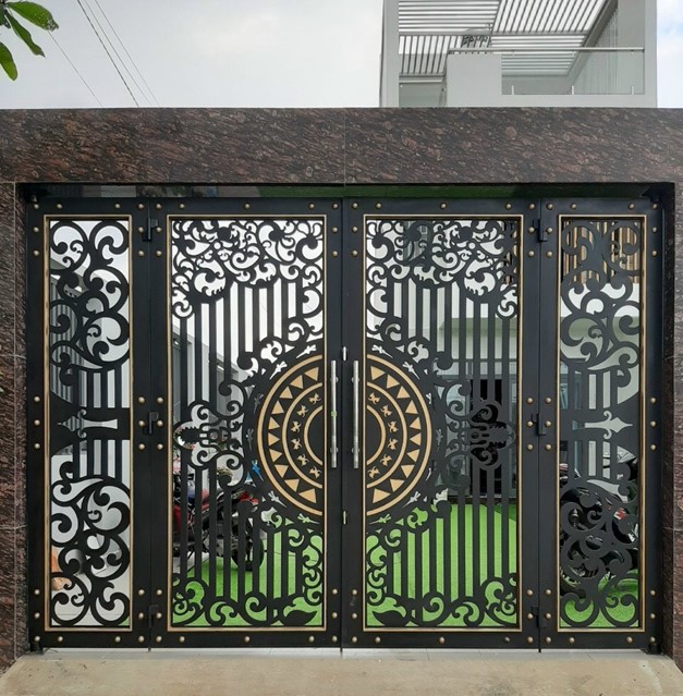 Cổng sắt CNC: Được gia công bằng công nghệ cắt CNC hiện đại, tạo ra các họa tiết sắc nét, độc đáo, mang đến sự khác biệt cho ngôi nhà.